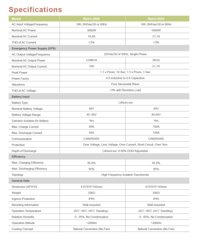 Retro - Model 3680/5000 -AC Coupled (Battery) Inverter