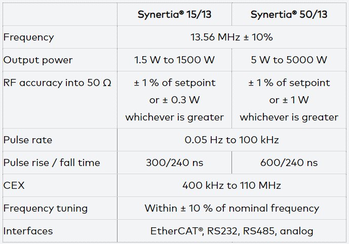 Users fully control the unique performance accelerators of Synertia® RFG, including repeatability, multi-level pulsing, and high-speed communication. This responsiveness provides actionable insights and enables more complex plasma applications than have ever been possible before: a new level of deep control. Thus, higher yield is the result of Synertia®'s fast and agile process control, which delivers superior repeatability, faster tuning, and custom wave-shaping.Most popular related searches
