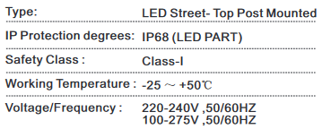 Street of top post designed for vertical installation. Aluminum body UV PC diffuser from LED Module ,which is in high-strength without broken . LED is made of PHILIPS Lumileds 3030 & 5050. Available in various finishes : white , grey, black ,etc.,