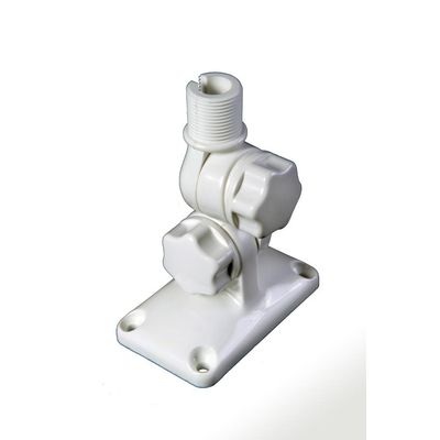 The lightweight SW3DK tilt-pivot swivel base made of high-strength nylon provides a firm grip through its four-point screw connection. With the handy rotating devices on the holder, the antenna can be quickly and easily tilted in 3 dimensions. The standard 1 inch x 14 BFS male thread is compatible with our antennas. The cable guide on the thread allows the insertion of the cable even if a connector is already mounted on the cable., United States, Illinois