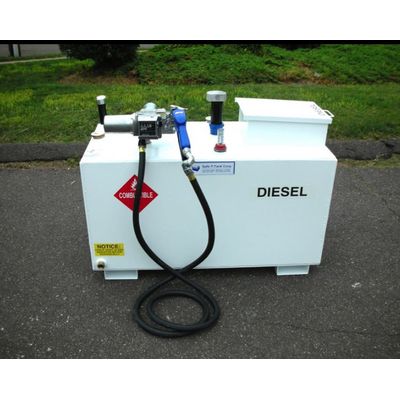 Double wall 50-gallon diesel dispensing tank with 12 volt pump, level gauge and venting. 27 1/2" x 23 1/4" x 23 3/4", 300# empty. Not for road or highway use.