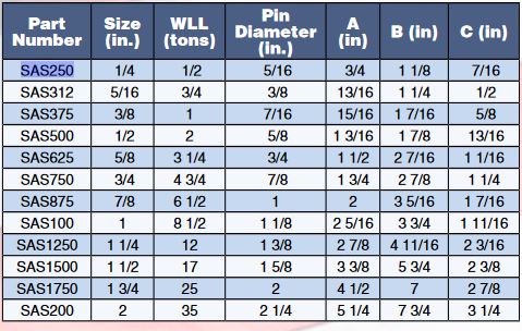 Complete with bolt, nut and cotter pin; Overhead lifting applications where pin removal is minimal. Forged, Quenched and Tempered Galvanized Carbon Steel Body and Alloy Pins.