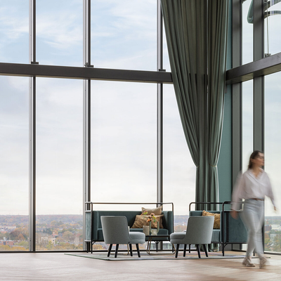 Our solar and thermal glass is available in different types. From invisible protection by in the form of a solar control coating on the glass (Briljant®) and mass-coloured glass and/or a reflective coating (Isolide Sun®), to fully integrated sun protection between the windows using Screenline®.