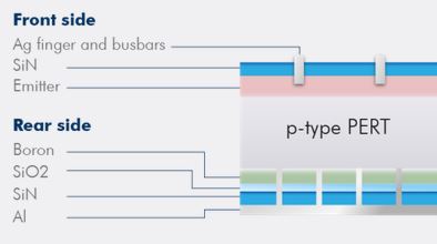 Unlike standard cells and PERC, which both use an aluminum-alloy BSF, PERT (Passivated Emitter Rear Totally Diffused) cells have a diffused rear surface. That means, with p-PERT the emitter of p-type based wafer is formed with phoshphorus diffusion and BSF is realized with boron doping. PERT cells do not show the considerably light-induced degradation and can be adapted to bifacial.