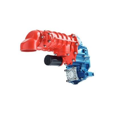 Screw compressor MH6 For dry bulk 250 to 600 m3/hr - (2,5 bar). Dimension : L 604 x H 358 x W 280 mm. Weight : 25+50= 75 kg. Designed to meet the Euro 6 regulation. 2 PTO versions available : Double PTO with hydraulic pump, Single PTO without hydraulic pump.