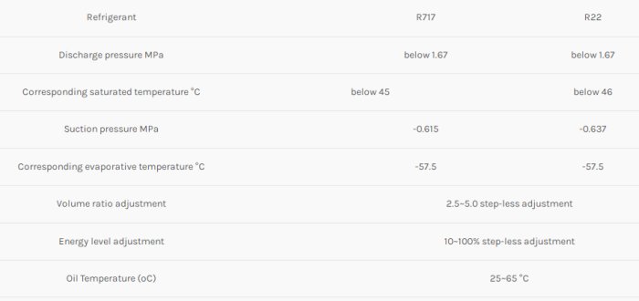 The exhaust temperature of the unit is low, high volumetric efficiency
