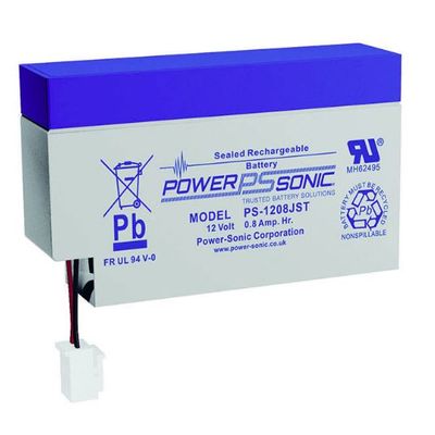 The PS-1208JST FR is part of our PS range of sealed lead acid batteries (often referred to as VRLA) which have been specifically designed for general purpose and standby applications. The 12V 0.80Ah battery is flame retardant to UL94:V-0 and offers excellent performance in a wide range of applications including security and fire systems, medical devices, emergency lighting and UPS systems. All Power Sonic batteries are subject to stringent quality controls through every step of the manufacturing process ensuring both consistency and reliability.