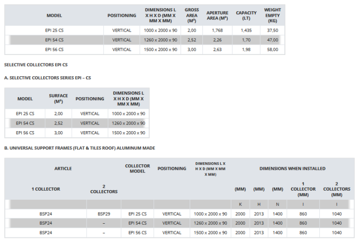 Cosmosolar - Model EPI – CS -Selective Solar Collectors