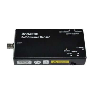 The unique SPSR (Self-Powered Sensor) with internal rechargeable batteries provides the required power to any one of (4) Monarch Sensors (see below). The TTL compatible output is switch selectable as either positive going 0-5 V pulses or negative going 5-0 V pulses provided on a BNC connector. The internal rechargeable batteries provide 40 hours of operation between charges. For continuous operation, the SPSR can be powered by 115/230 V ac. Self-powered sensors are a critical element for providing one pulse per revolution for vibration analyzers, spectrum analyzers, stroboscopes, data acquisition equipment, tachometers, balancers, waveform analyzers, and magnetic tape recorders.
