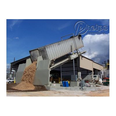 A portable unit designed to be moved with less frequency utilizes a subframe only, with the dumper sitting directly onto a flat surface. This unit is portable in that it is fully capable of being moved, yet must be lifted onto a flatbed trailer for transport. These portable units are also offered in both the standard and low-profile types which utilize a simple, shortened approach ramp. The low-profile style portable unit may also be used in combination with a live floor hopper.