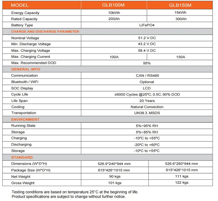 GLB100M Floor Mounted Lithium Battery 51.2V 200AH: Battery Type:LiFePO4, Energy Capacity:10kWh/15kWh, Voltage: 48VDC/51.2VDC, Warranty: 5/7/10 years warranty.