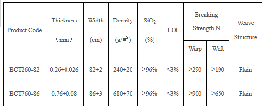 High Silica Fiberglass Fabric is a kind of high temperature-resistant, inorganic fiber. Its melting point is close to 1700 OC and it can be used under 900 OC environment for a long period. It’s widely used in rocket, missiles, spacecrafts for thermal insulating ablation,high-temperature resistance, Fire insulation. The content of SiO2 is more than 96% and the weight loss of ignition is less than 3%. It has two kinds of weaving structures, plain and satin. The thickness is 0.1-1.5mm.
