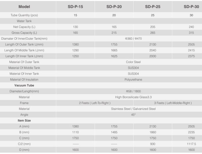 Sidite - Model SD-P -Pressurized Double Inner Tanks Solar Water Heater