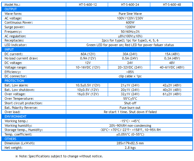 Hon Turing - Model HT-S-600 -Sine Wave Inverter