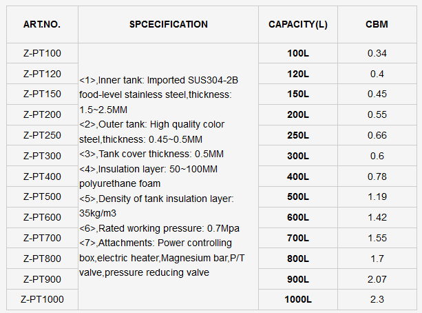 - Outer tank: High quality color steel,thickness: 0.45~0.5MM