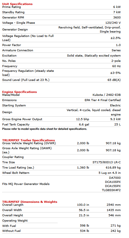 Multiquip - Model DA7000SSA3 -Single-Phase Generator