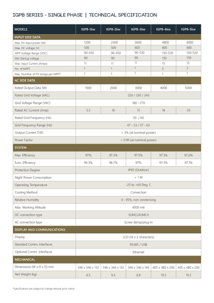 Novergy - Model IGPB Series -Single Phase Grid Tie Inverter 1kw to 5kw