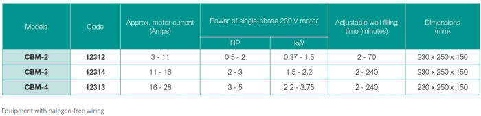 One of the most critical situations in pump operation is dry running. In dry running situations a current decrease is detected. This reduction of consumed current is measured by the PS-R electronic relay fitted to the protection panel: When the preset undercurrent value is reached it switches the pump off.