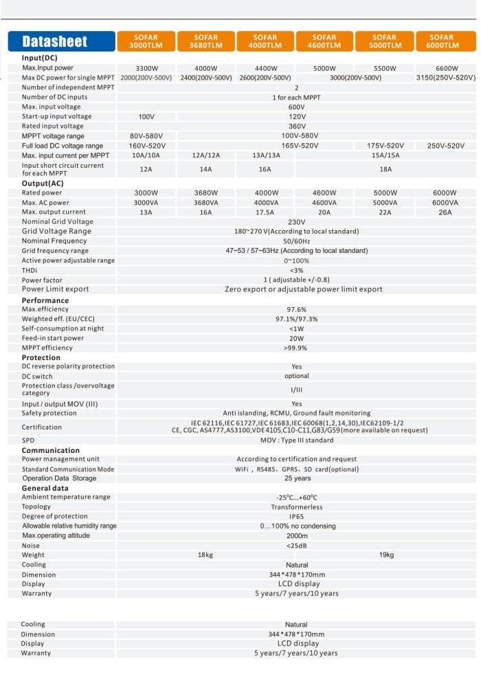 - Sofar - Model 3680TLM - Single Phase PV ...