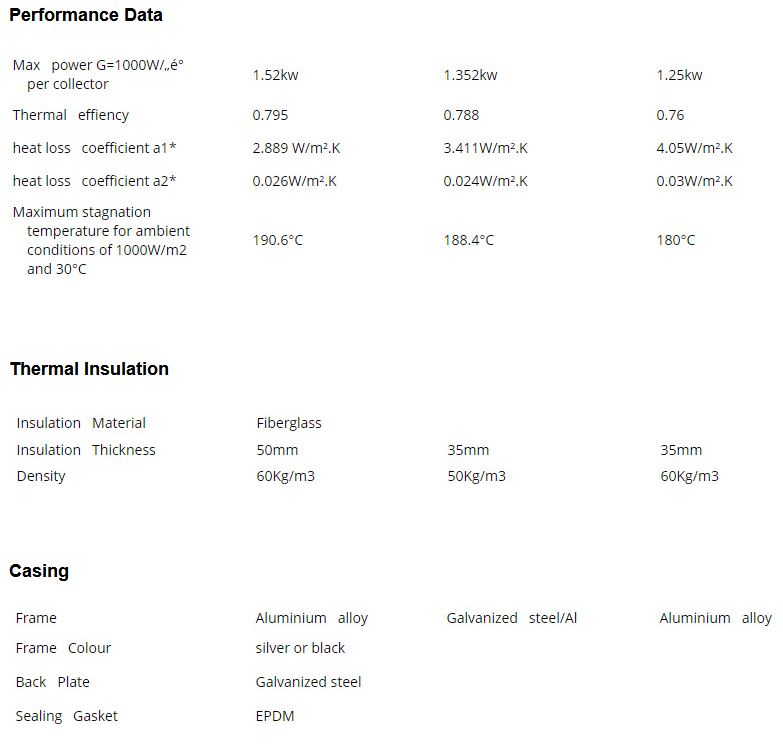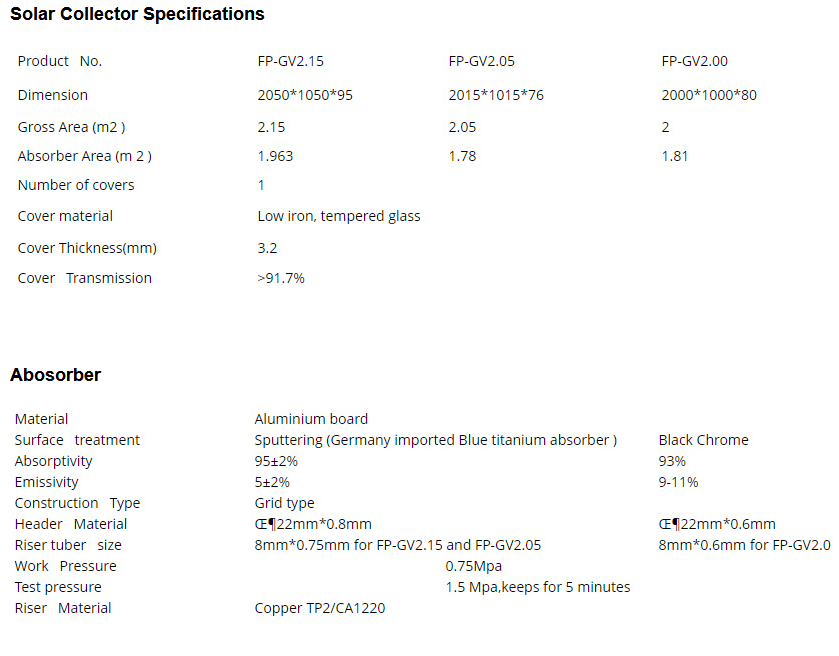 - 5 years` warranty for flat plate solar collectors