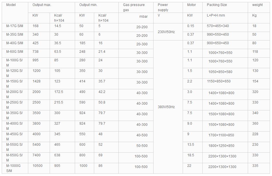 The M series burners, the Mechanical & Electrical Integration burners which extensive use the steam boilers, heating water boilers, heat conducting oil stove, direct-fired generator, lithium bromide air-conditioning plant and other industrial heating and parch stove equipments, are designed by advanced combustion technology in the world and consult the EN267 Standard and the national interr- elated standard.
