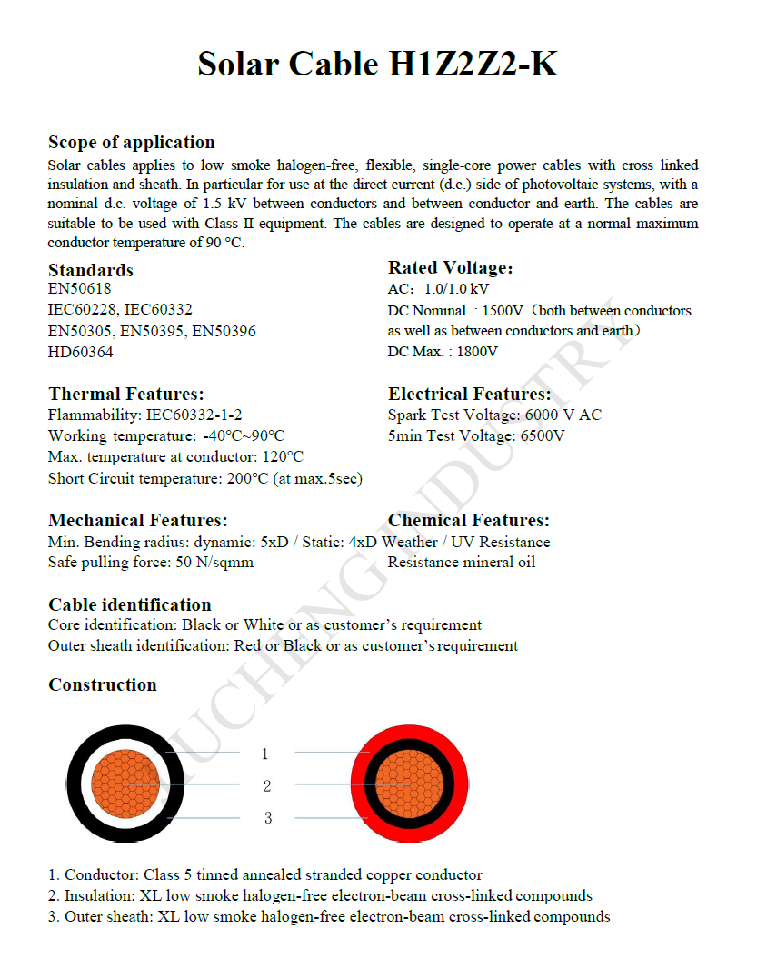 Solar cables applies to low smoke halogen-free, flexible, single-core power cables with cross linked insulation and sheath. In particular for use at the DC side of photovoltaic systems.