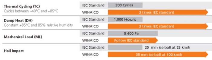 Reliability is at the core of WINAICO’s product design philosophy, and we test our solar panels to the limits, above and beyond IEC standards to reach the top quality associated with the WINAICO brand.