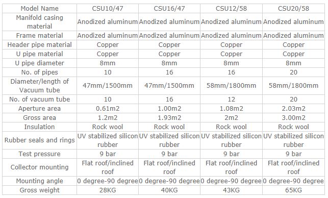 CSU collector has been tested to EN12975 and achieved a comparable high efficiency and with a very small heat loss coefficient. The COST/KWH value is smaller than most other collectors which mean you pay less for each KWH out put for our collector.