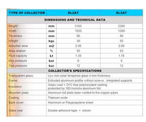 - Absorber Plate-EL-AT SERIES: 0.5 mm full plate aluminum absorber coated in high efficiency blue sputter Titanium Oxide coating welded by laser to the copper risers.