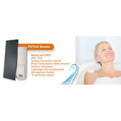 The Thermodynamic Solar Collectors provide hot sanitary water up to 50ºC, day and night, with rain, wind and in absence of sun. At present there is no superior technology on the market than this, which can provide an energy saving of up to 80% all year round. The Solar PST technology represents the main water heating system either in summer and in winter time with no need of a backup system as long as the external temperature is above 0ºC. Maintenance for the equipment is almost non -existent providing maximum safety and security. The domestic systems are comprised of cylinders from 250L up to 450L which are supplied in kits for an easy and safe installation, 250L enamel PST250V and 450L inox with 2 panels PST450IS. Solar PST systems are compatible with any water heating system as the Solar PST cylinders can be supplied with an extra coil upon request. (PST250IM and PST450ISM).
