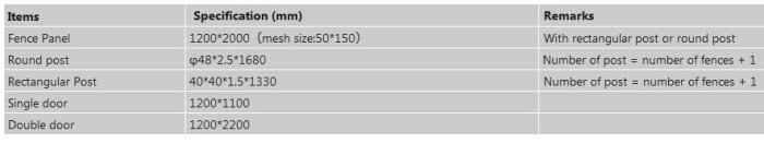 Surface treatment: Electro Galvanized then PVC Coated. Foundation: Concrete base or ground screw. Height: Both width and height of fence can be customized.