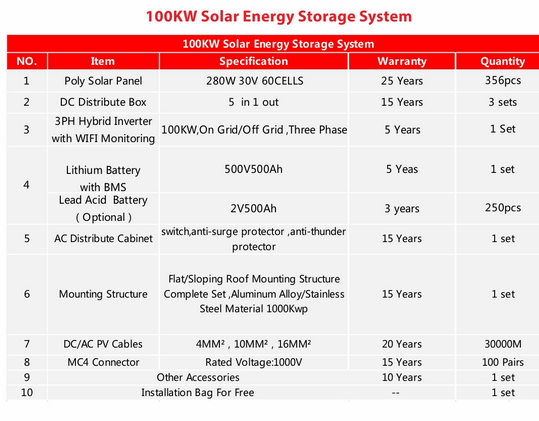 Solar energy storage system suits for commercial/industrial buildings as well as individual houses in areas with(or without) grid power. The systems mainly consists of solar panels, hybrid inverter & controller, distribution box, batteries and mounting brackets. The system can work under both on grid and off grid. The electricity can be stored in batteries or feedback to grid.