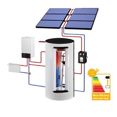 The perfect combination of solar space heating and hot water preparation. COMBI line high-performance solar space heating solutions save up to 30% of gas or oil. COMBI line systems smoothly integrate with all common heat generators, such as wood pellet and oil or gas boilers, while allowing for high hot water outputs at a constant temperature.The SOLUS II combined storage tank guarantees immediate availability of hot water at all times thanks to an efficient stratified heat exchanger system and avoids frequent boiler starts. The 120-mm polystyrene insulation provides excellent insulation. Thanks to highly effective thermal brake, storage losses at the connections can be noticeably reduced.