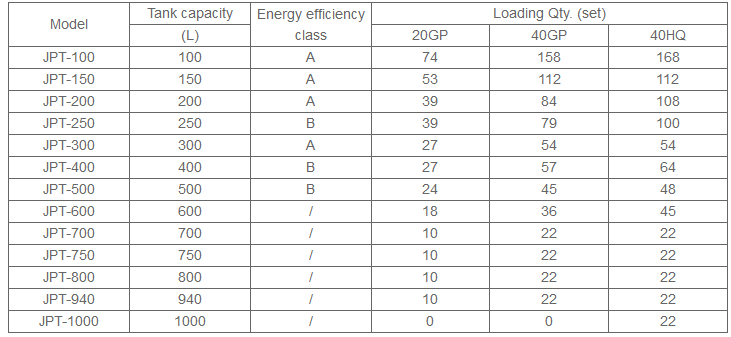 - 250L, 400L, 500L tanks with Europe Union Energy Efficiency Class B.