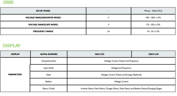 - Works as standalone Solar Inverter in case of No-Grid