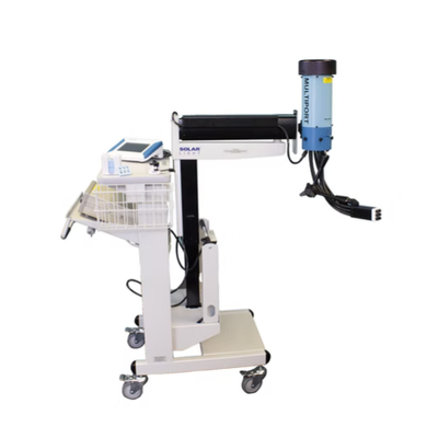 Solar Light’s advanced Model 601 Multiport® SPF Testing Solar Simulator is the industry standard for high throughput SPF testing and dermatological studies. It produces UVA or UVA+B (290-400nm) from its 6 individual 8mm square outputs, each of which can be controlled separately. Up to 6 tests can be performed simultaneously in a short period of time, dramatically increasing lab productivity. The output intensity is rated up to 4 MEDs per minute, and can be controlled by the adjustment knobs on each port, as well as via the included XPS-300 power supply. The output is approximately 20 times the intensity of the sun, and simulates the ultraviolet spectrum of the sun with over 90% homogeneity. A built-in locking Articulation Arm assures precise light guide placement on subjects. Solar Light Solar Simulators are used in 95% of SPF testing laboratories globally, and meet the latest ISO, FDA, JCIA, and COLIPA spectral irradiance standards. Everything required to begin testing is included with the 601 Multiport®: The 6-Port Simulator, DCS-2 Automated Dose Controller, NIST-Traceable PMA-Series SUV and UVA Sensors, Safety Glasses, and a starter pack of 100 disposable Hypoallergenic Placement Pads. An optional Point of Service Cart for the 601 Multiport® is available with 2 dimensional electronic actuators to allow accurate placement of the light guides, and includes a fixture to carry the power supply, a stand for the radiometer, and a desktop for note taking as shown.