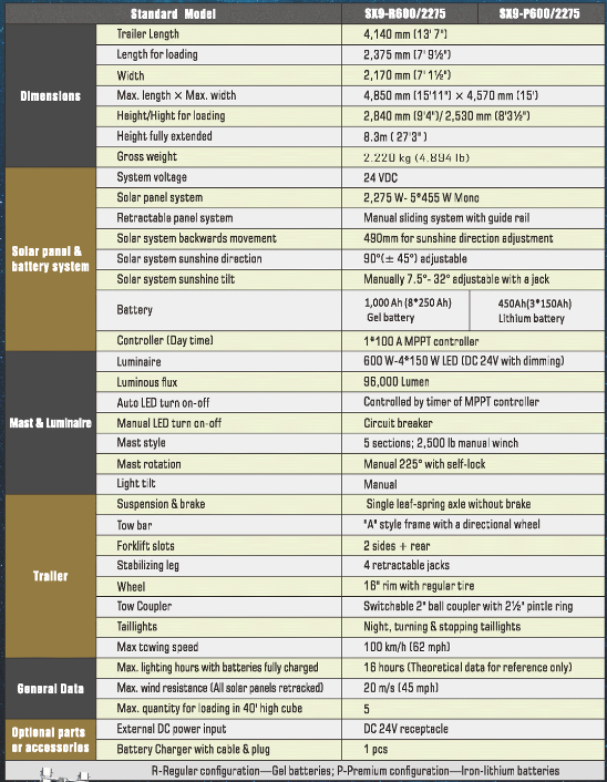 Arizona - Model SX9-R600/2275 -Solar Light Tower