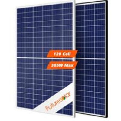 300w poly-crystalline solar panel factory, a good choice of solar panels for schools, houses and commercial buildings, solar water pumps, solar air conditioners. This Futuresolar Polycrystalline solar panel made by super high efficiency poly solar cells with half-cut cell technology, your best solar panel options.