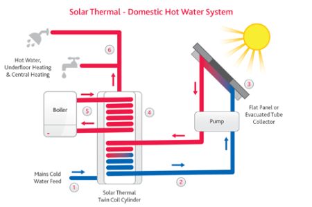 - This fluid then passes in to a cylinder heating up the water via a coil