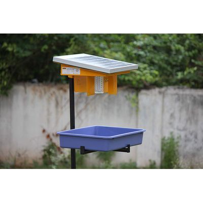 Hectare solar insect trap is a device for pest control. The device gets charged in day time using sunlight and automatically switches on at dawn and dusk to trap harmful insects. 10 watt solar panel, 8 hr working , automatic switch on 4 hrs after sunset and 4 hrs in morning, Tray for pest collection, 1 meter long stand, UV Led lights