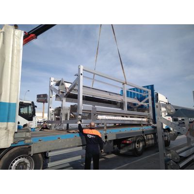 The FLT20 solar boiler modules utilize Fresnel concentrator technology designed to maximize thermal efficiency. These modules operate effectively under specific reference conditions: a direct normal irradiance (DNI) of 900 W/m2, with input and output temperatures of 150 ºC and 180 ºC respectively, and an ambient temperature of 30 ºC. The optimal performance of these modules is ensured by calculating the incidence angle modifiers (IAM) longitudinally and transversally using ray tracing tools. The optical efficiency of the modules is approximately 63.2%, which can be modulated further by the IAM values. Each module is pre-assembled in the factory located in Castellón, Spain, ensuring streamlined logistics and installation. Additionally, the Castellón facility houses a solar steam boiler for practical demonstrations. This modular and scalable technology offers a significant advantage over on-site assembly, enabling efficient and secure transport via truck or standard maritime containers.