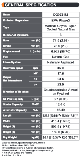 Kubota EngineModel DG972-E2 -Spark Ignited Engines