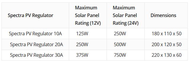 All models include an easy to view LCD display with simple to operate push buttons for scrolling and settings where needed. The 10A and 20A models include 2 USB charge points, 5V 1A rated, making these Spectra models excellent value for the user. Standard features include: