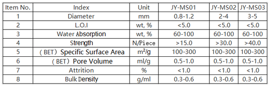 The JY-MS type product is used as a covering proppant and adsorbent material for the catalyst in the reactor. Its main function is to increase the gas or liquid distribution points and support and protect the active catalyst with low strength. It has the characteristics of high purity, good heat resistance and mechanical shock resistance, and stable chemical properties. It is widely used in petrochemical, natural gas, coal chemical industries and other industries.
