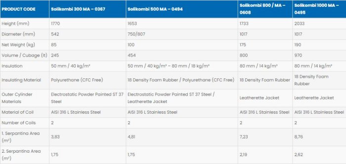 Solimpeks - Model Solikombi -Stainless Heat Exchanger Water Heater