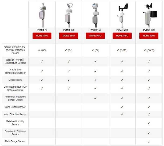 The PVMet series of weather stations is designed for solar operations looking to gain insights into the efficiency and status of their PV system with accurate, bankable data. The PVMet series is simple to use, yet powerful enough to transform a solar installation into a sustainable solution that saves resources and energy. The RainWise PVMet 100 station arrives fully assembled and is fully operational in minutes. All our PVMet stations are SunSpec certified or compliant and feature integration via Modbus RTU or an ethernet Modbus TCP option. Our customizable family of PVMet solutions offers the right fit for any PV project. Contact us for a personalized experience to develop a powerful and reliable solution specific to your business needs.