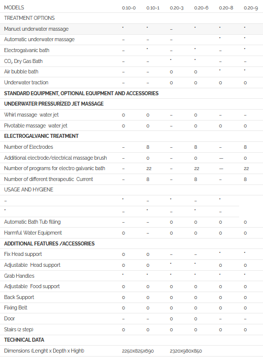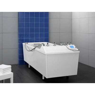 It adapts perfectly to therapeutic needs for underwater massages, electro galvanic baths or Co2 dry gas baths. The Stangerbard bath can be individually adapted for a variety of hydrotherapeutic applications. Powerful manual massage equipment is available for therapeutic massages. Different treatments can be completed with a revitalizing air bubble bath and automatic pressurized jet massage.