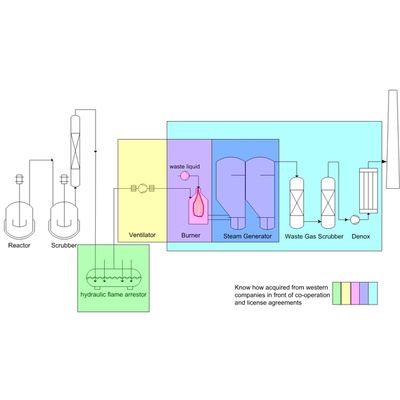 Static incineration chamber mainly used for liquid and off gas treatment.