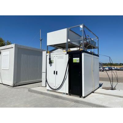 300 kW fast charging station with battery back-up at the SCHAEFER site in Achern: Concept charging station for weak grids with battery back-up. Concept charging station off-grid, powered by hydrogen H2 with fuel cell.