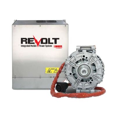 The BOSS REVOLT Stationary Power Supply System is an innovative solution designed for work trucks, providing a reliable 6.0 kW pure sine wave power output. This system eliminates the need for batteries and engines, simplifying maintenance and operation. At only 88 lbs, it integrates a custom-built alternator connected to a patent-pending high-performance inverter, distributing power through a specialized 3-phase power panel. The panel offers versatile connectivity options, including a 20A/240v, a 30A/120v twist connection, and a 20A/115v outlet. Suitable for various applications, the REVOLT can fit multiple vehicle models including the Ford Transit, RAM ProMaster, Freightliner, and Mercedes-Benz Sprinter, among others. It is ideal for use in service trucks, mobile pet grooming, food trucks, telecommunications, film set vehicles, and more, offering flexibility for professionals requiring on-site power solutions.